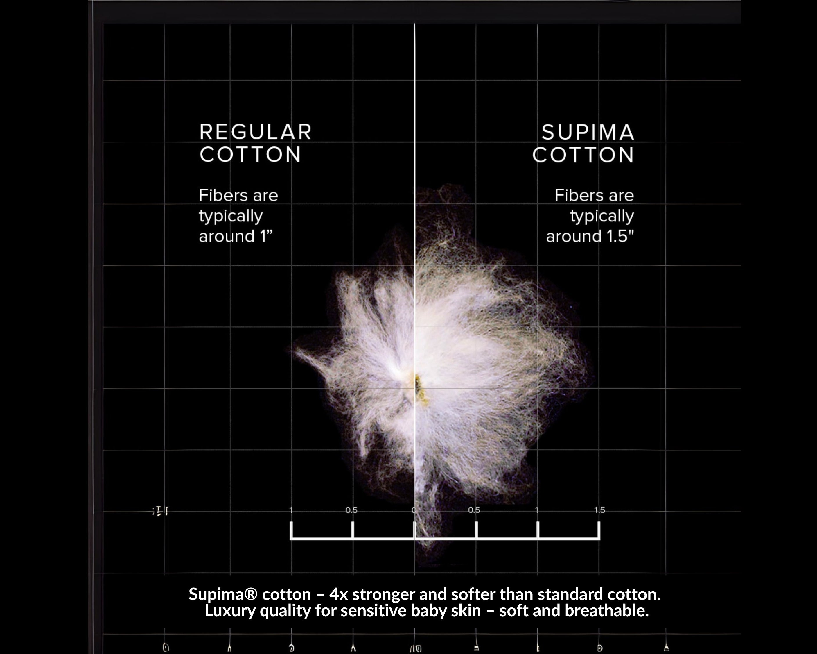 Made from premium long-staple fibers that are three times softer and stronger than regular cotton, ensuring lasting comfort for sensitive baby skin. -